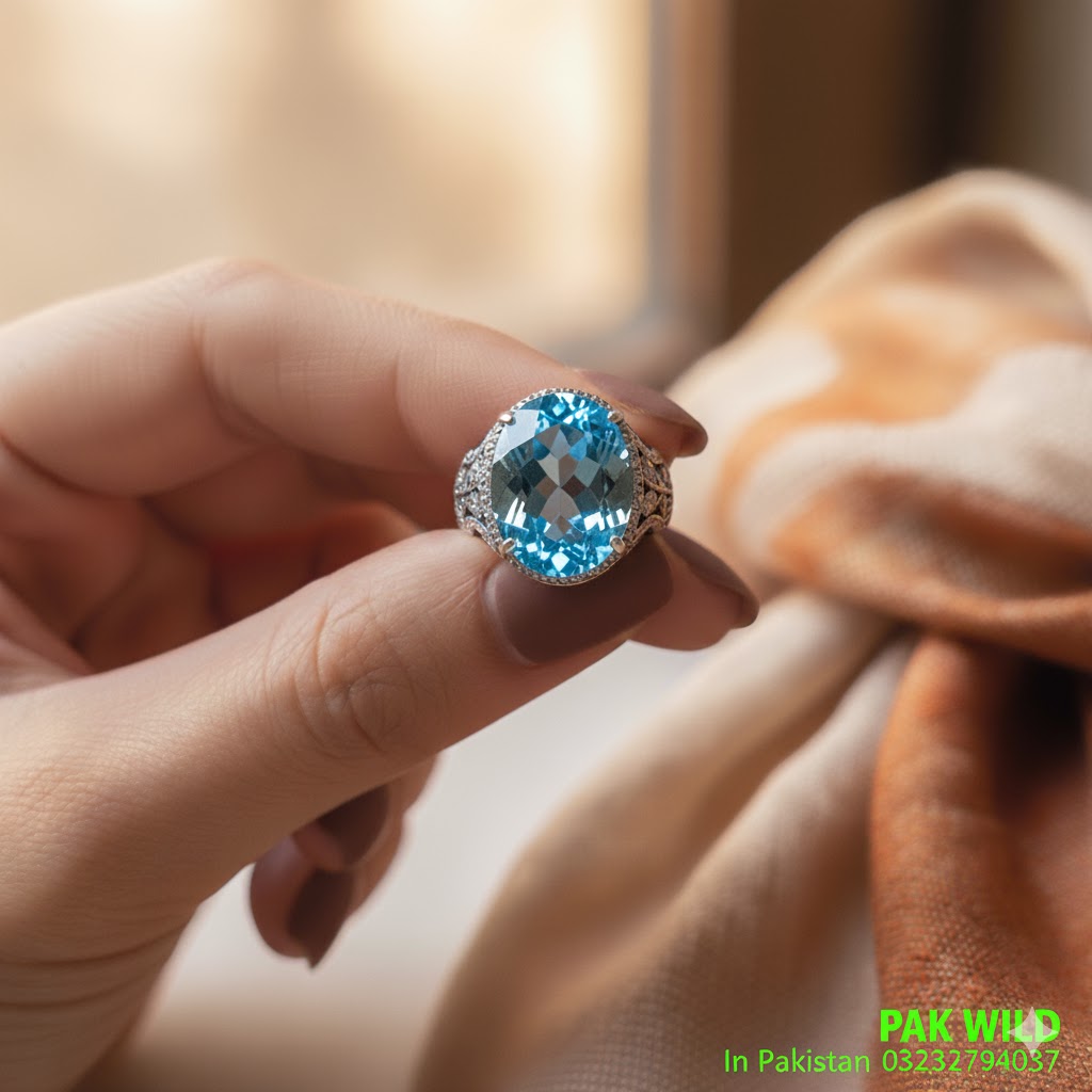 Topaz is a highly cherished gemstone in Pakistan, known for its crystal-clear brilliance and elegant appearance. It is commonly used in rings, pendants, bracelets, and engagement jewelry. Blue Topaz and White Topaz are among the most popular choices because of their timeless sparkle.